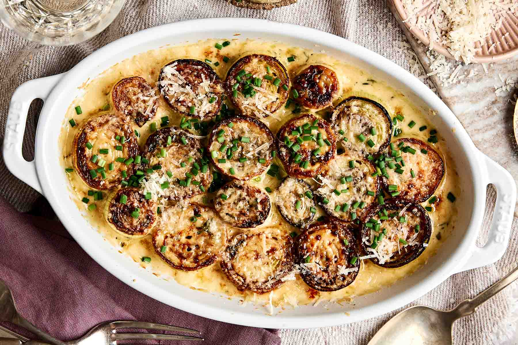 - Meanwhile, prep the oven and baking dish: Preheat the oven to 325 degrees F with a rack in the top third. Use your fingers to butter a small 1-1 ½-quart baking dish (such as a 9-inch oval or 6×8-inch rectangular dish), then season lightly with kosher salt and a few twists of black pepper. Place on a small baking sheet to catch any drips, then set aside.