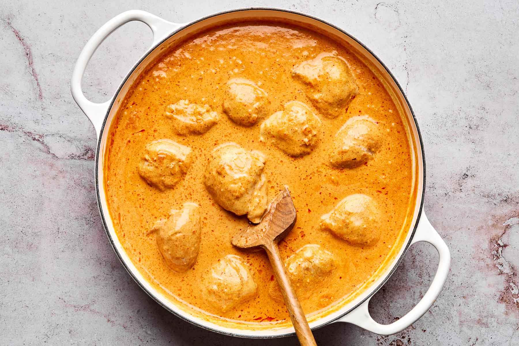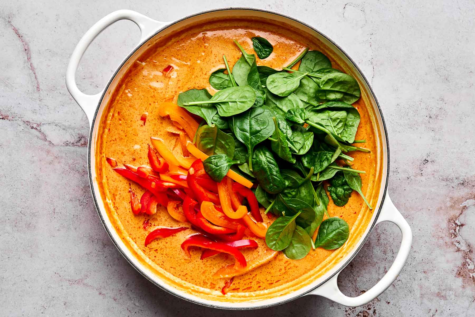 - Prefer an extra-creamy coconut red curry? Easy – you have 3 great options: 1) swap one of the cans of coconut milk for coconut cream; 2) finish with a longer simmer in Step 4, until thickened as desired; and/or 3) thicken with a quick cornstarch slurry – whisk 1-2 teaspoons cornstarch with 2-3 tablespoons cold water, stir into the coconut red curry sauce at the end of Step 4, then simmer until thickened.