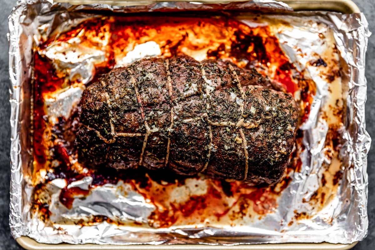 The secret is roasting at two different temperatures: first, low and slow to gently cook the beef tenderloin to a perfect medium rare, then a quick blast of high heat creates a golden-brown herb crust.