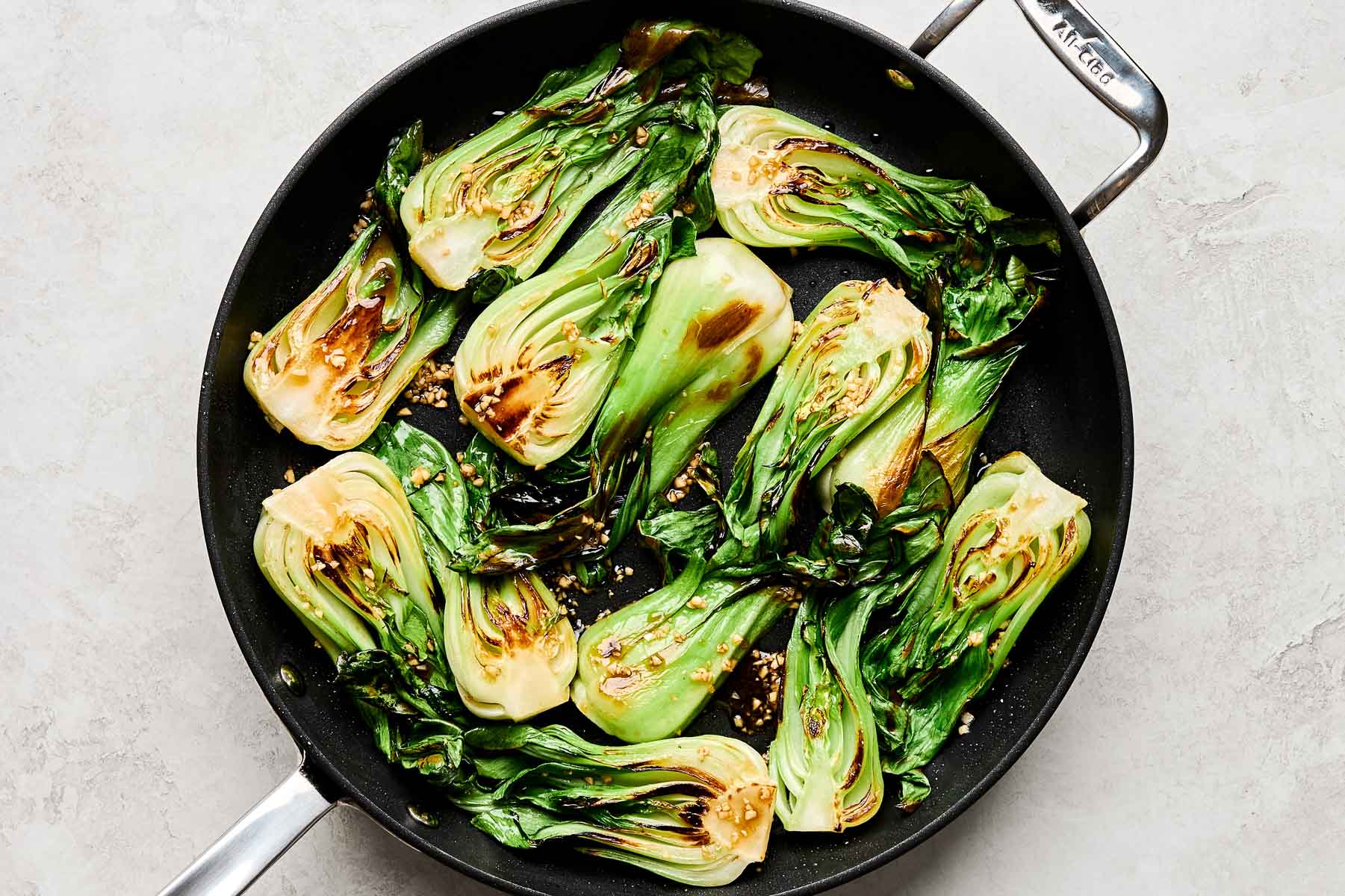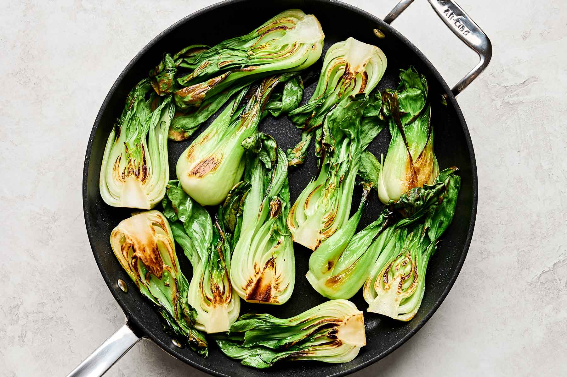 A quick sear gives the baby bok choy gorgeous golden edges, while a sesame-soy glaze gives the leafy greens a bold punch of flavor – no bitterness!